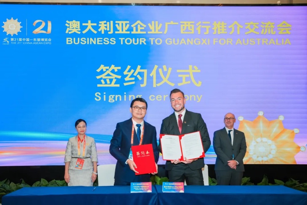 9月24日,在廣西南寧舉辦的第21屆中國—東盟博覽會(huì)澳大利亞企業(yè)廣西行推介交流會(huì)上,廣西五礦集團(tuán)所屬五礦資源公司與澳洲NEW START集團(tuán)共同簽署鋁錠購銷意向協(xié)議,東博會(huì)秘書處秘書長韋朝暉、副秘書長梁藝光、澳大利亞駐廣州總領(lǐng)事康天幕見證簽約儀式。同時(shí)為就協(xié)議及合作事項(xiàng)進(jìn)行深入磋商,雙方于25日召開座談會(huì)并達(dá)成系列意向共識(shí)。